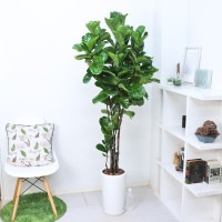 曲がり樹形が素敵なカシワバゴムの木(フィカス・リラータ)バンビーノ 陶器鉢仕立
